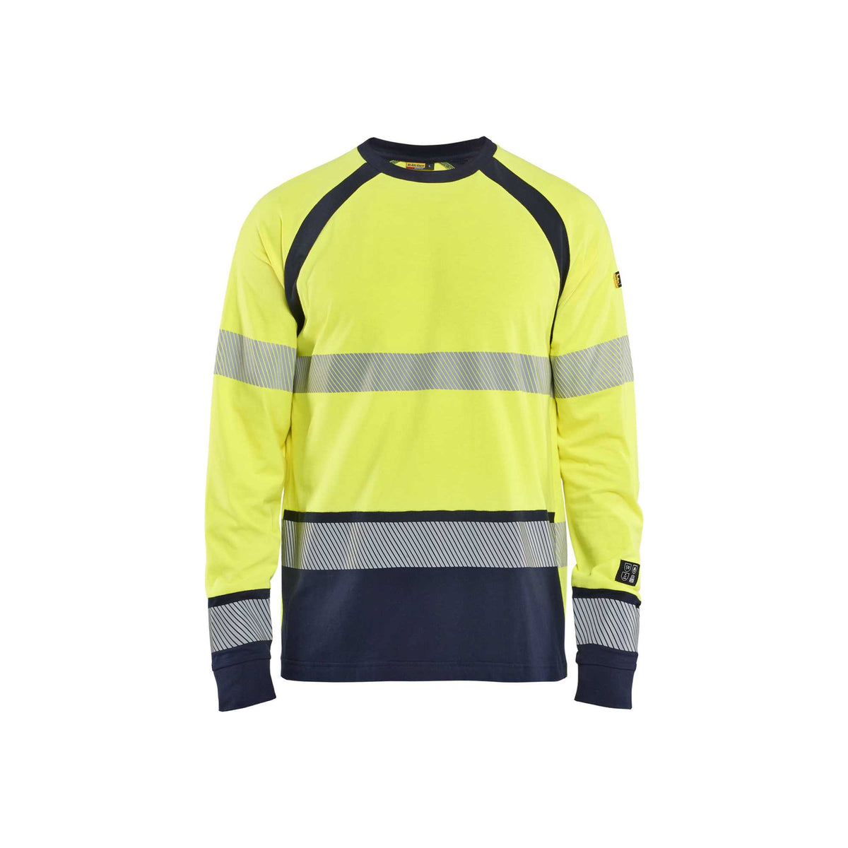 BLAKLADER 34361737 Long sleeved T shirt Multinorm Hi Vis Reflective Long Sleeve Work T-Shirt MEN - Flame Retardant - XS / Hi-vis yellow/navy blue